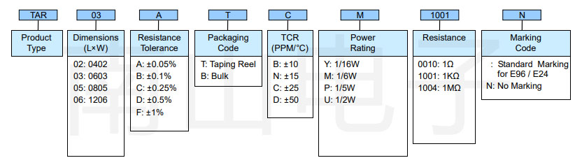 TAR系列电阻命名规则: